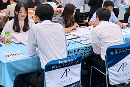 是非、青山パートナーズグループの事務所説明会、専門学校主催の合同就職説明会にご参加頂き、自分の目で見て、直接メンバーと話し、肌で感じて、自分に合うと感じて下さい。